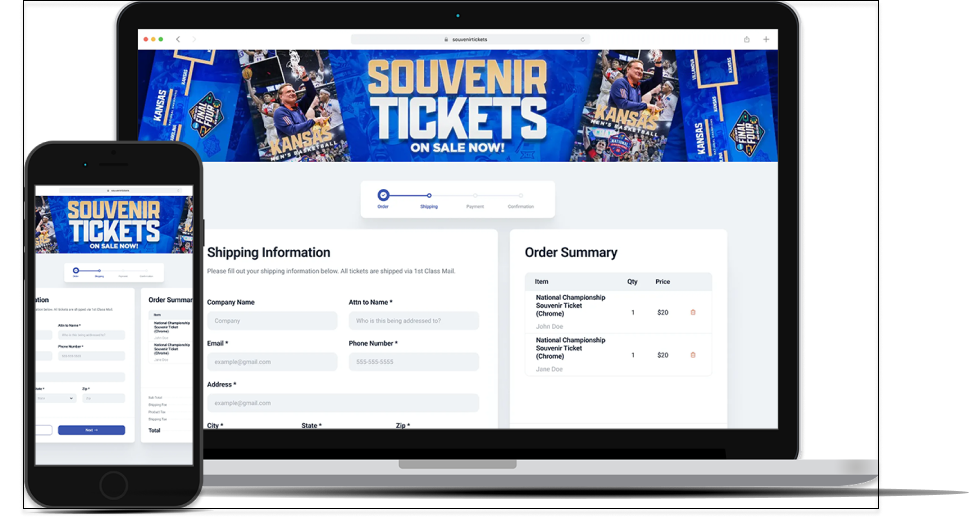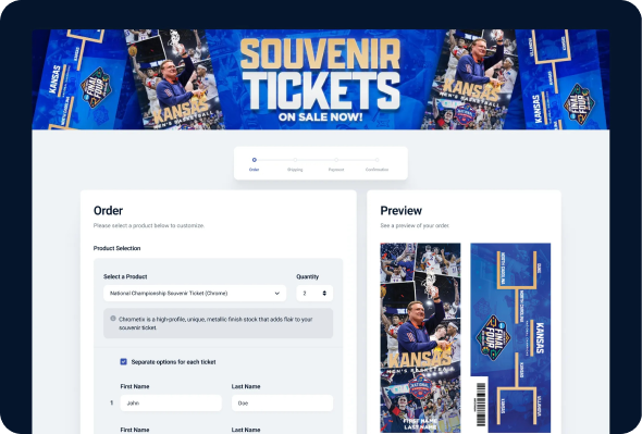 A Direct Souvenir website is a unique, branded website deployed for a single client. Each site promotes a venue (i.e. – Yankee Stadium) or team (i.e. – UNC Tarheels Basketball). Customers can order a commemorative ticket for the events they attend.
