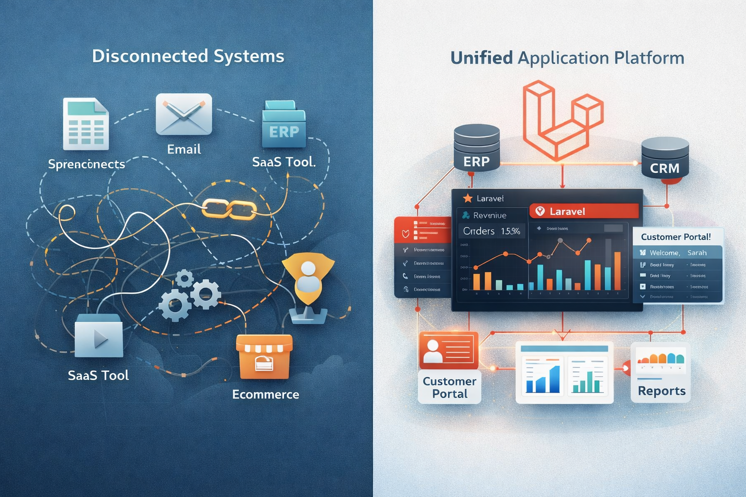 These systems slow teams down and create operational friction. A custom Laravel application allows you to design software around your business, not the other way around.