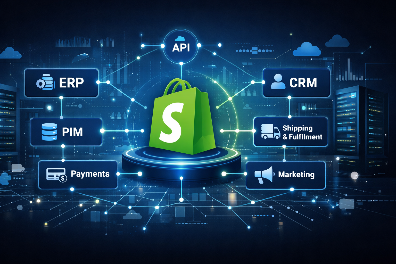 Our team designs, builds, and integrates Shopify stores that connect seamlessly with your ERP, PIM, CRM, and fulfillment systems – ensuring your ecommerce platform becomes a core part of your business operations, not a disconnected sales channel.